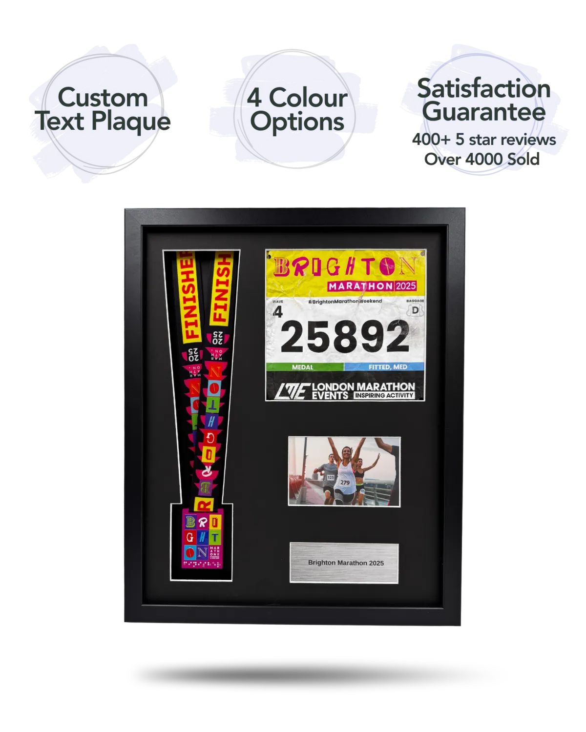 "Great quality frame which was securely packaged so that it didn’t get damaged. My plaque that I had personalised came exactly how I wanted it and was very high quality. The frame came with tape, safety pins and a leaflet with a QR code on so that you could view the tutorial of how to put it together if you wanted. Overall I would highly recommend buying from here. Thank you!"